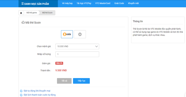 VTC Pay để có thể mua thẻ scoin vừa nhanh lại còn vừa rẻ.