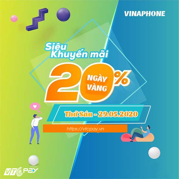 Chương trình khuyến mãi 20% thẻ nạp ngày vàng 29/52020 lần này diễn ra trên toàn quốc và áp dụng cho tất cả thuê bao di động Vinaphone. Chính vì thế, tất cả các thuê bao trả trước của nhà mạng Vinaphone đều có thể tham gia. Mua mã thẻ/nạp tiền điện thoại Vinaphone ngay qua VTC Pay để được giảm giá thêm tới 4,1% bạn nhé!