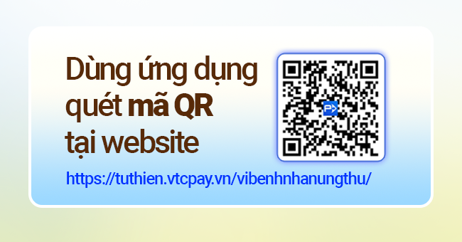- Cách 2: Quét mã QR ủng hộ tại website: https://tuthien.vtcpay.vn/vibenhnhanungthu/