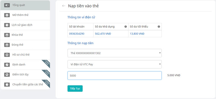 Thêm vào đó, TPBank - VTC Mastercard đang duy trì kênh nạp tiền duy nhất và miễn phí là thông qua Ví điện tử VTC Pay.