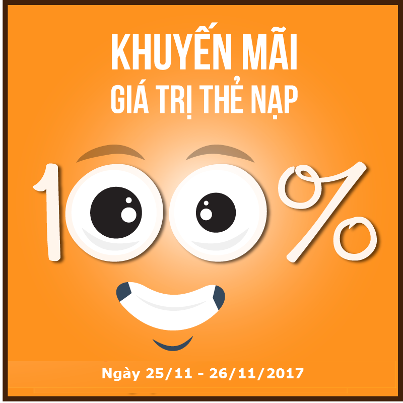 TẶNG 100% GIÁ TRỊ THẺ NẠP TRONG NGÀY 25/11/2017 VÀ 26/11/2017 (GIÁ TRỊ THẺ NẠP >50.000Đ)