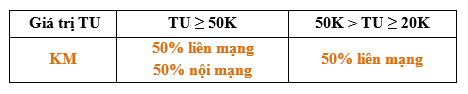 - KM liên mạng sẽ được cộng vào TKLM2 và dùng cho liên mạng, thời hạn sử dụng của KM 30 ngày kể từ ngày nạp thẻ.