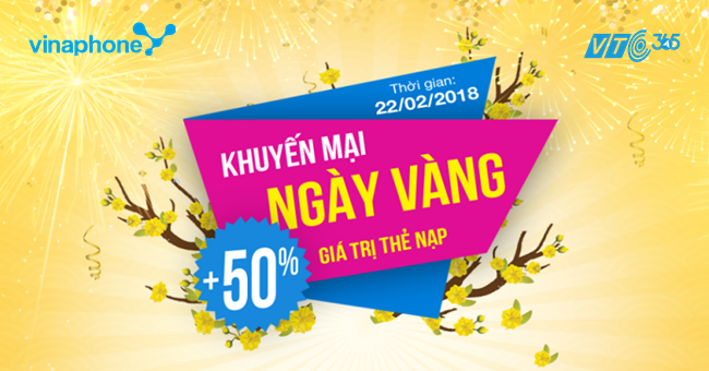 Chương trình Vinaphone khuyến mãi ngày 22/2/2018 là chương trình khuyến mãi nạp thẻ ngày Vàng toàn quốc được nhà mạng triển khai sau tết Nguyên Đán giúp các thuê bao cải thiện tài khoản sau dịp tết, ngoài ra giúp thuê bao tích lũy thêm tài khoản thả ga sử dụng trong khoảng thời gian sắp tới. Nạp điện thoại ngay để nhận x2 khuyến mãi, bao gồm 50% giá trị thẻ nạp từ nhà mạng & 5,4% chiết khấu từ VTC365. Đặt lịch nạp ngay cho bản thân và gia đình kẻo lỡ nhé các bạn!